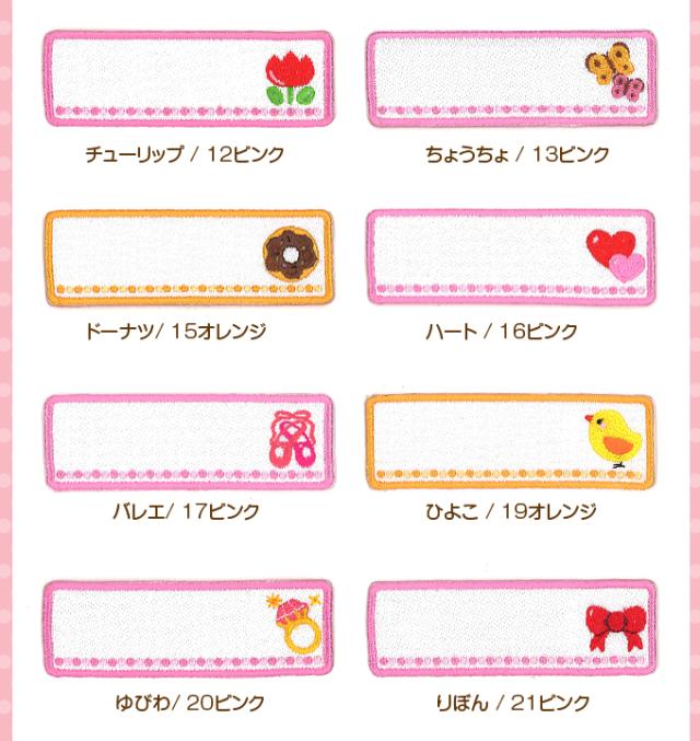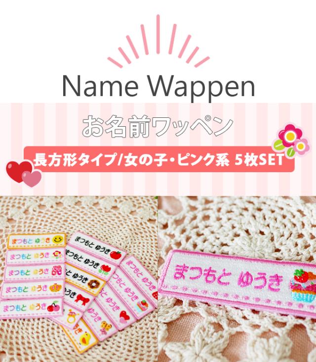 お名前ワッペン 長方形 ピンク系 同柄5枚 ネームワッペン アイロン 入園 入学 刺繍 プレゼント OR