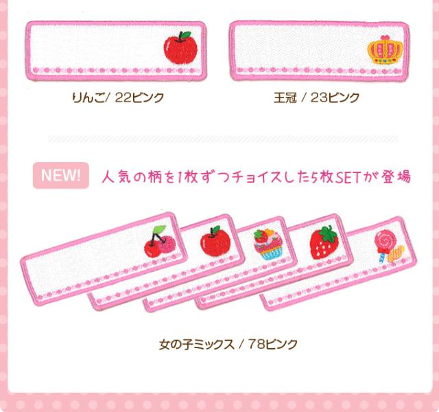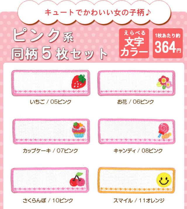 名入れ刺繍入りお名前ワッペン【ピンク系5枚セット】