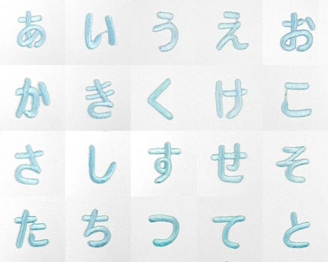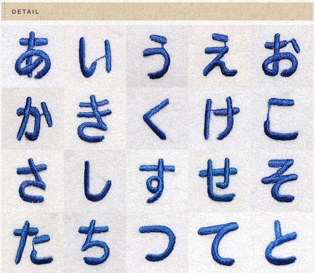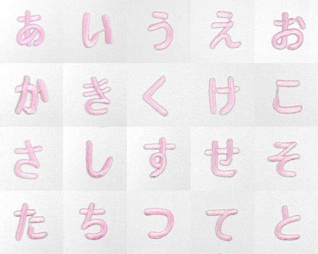 ひらがなのアップリケの中サイズです。 アイロンで接着するだけでまるで刺繍したように見えるので、とても上品な仕上がりになるのがポイント! カラーは「ピンク」「ブルー」「ネイビー」の3色ご用意していますので、布地のカラーに合わせてお選びください☆ |