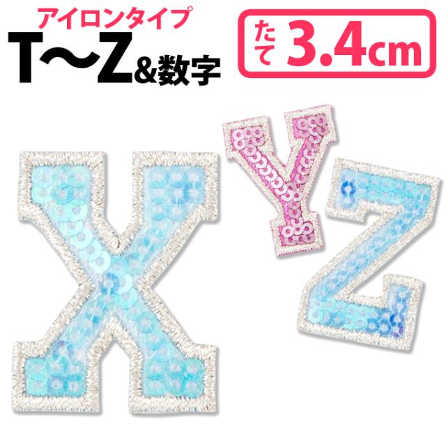 文字ワッペン アルファベット スパンコール T〜Z 1枚 名前 アイロン 男の子 女の子 名入れ お名前 文字 アップリケ CP
