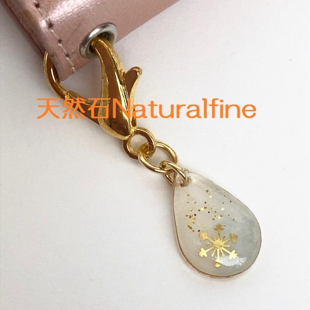 こちらは、天然石アクアマリンと雪の結晶のメタルパールを封入したスマホピアスです!