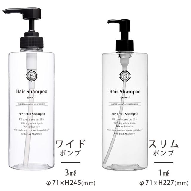 サイズ:スリムポンプ/直径7.1×高さ22.7cm、ワイドポンプ/直径7.1×高さ24.5cm