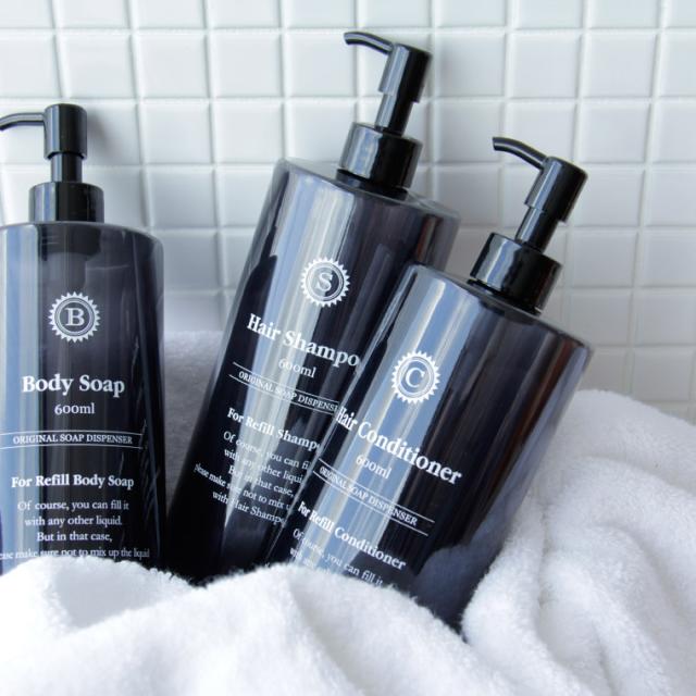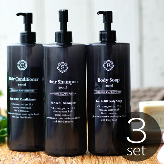 【送料無料】日本製 詰め替えボトル「イレモノ(ire-mono)」コロネット(3本セット/ノアール)【シャンプー ボトル ソープディスペンサープラスチック つめかえ エコ ボトル サニタリー おしゃれ 透明 クリア iremono】