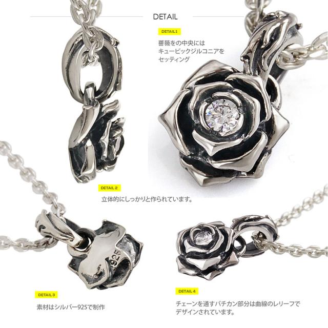 ネックレス 男女兼用 薔薇モチーフ!シルバーネックレス pe2165-ch c0040の50cmチェーン付