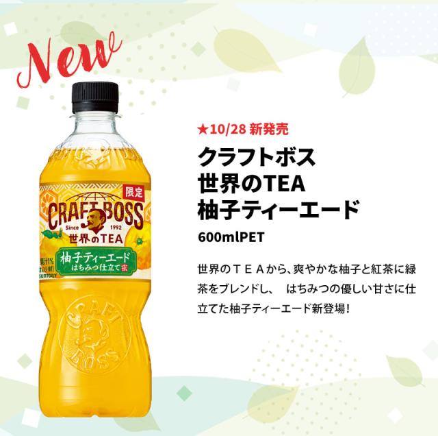 - クラフトボス 世界のTEA 柚子ティーエード 600mlPET★10/28発売★