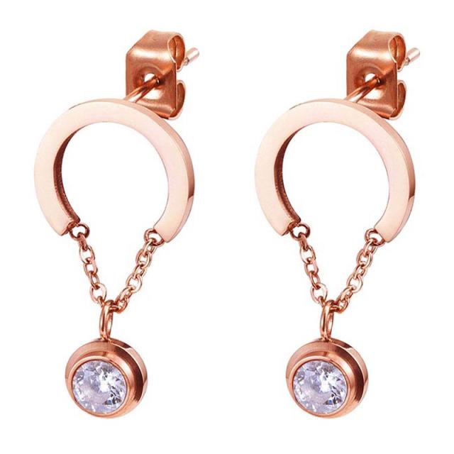 馬蹄型のホースシューのフレームにダイヤモンドのような輝きを放つキュービックジルコニアをピンクゴールドクサリチェーンでチャームにセットしたステンレスピアスです。可愛いく揺れる大人上品スタイルのステンピアス。クリスタルの輝きを存分に堪能させてくれる。結婚式やパーティなどで大活躍できる大人のステンレスピアス。レディース人気のピンクゴールドはプレゼントにも最適。シンプル綺麗なステンピアスです。
