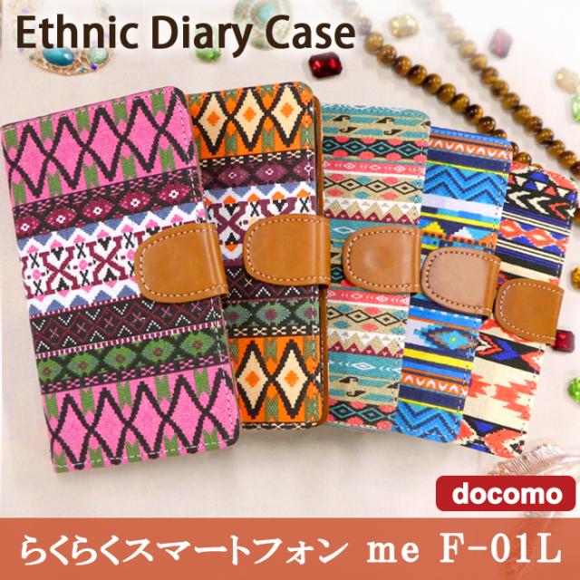 らくらくスマートフォンme F-01L ケース カバー F01L 手帳 手帳型 エスニック スマホケース スマホカバー