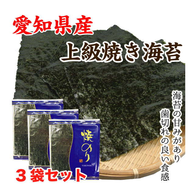 海苔 焼き海苔 愛知県産 全型24枚入り (8枚×3袋) 上級海苔 優上焼き海苔 送料無料