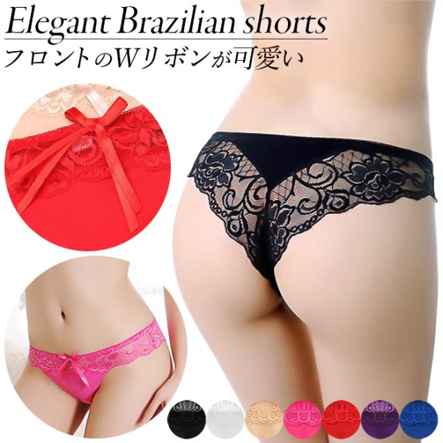 ブラジリアンショーツ Tバック レディース 綿混 レース 透ける ハーフバック リボン ストレッチ かわいい セクシー コットン タンガ ソング パンティ 下着 6807 プレゼント ギフト 母の日 父の日 敬老の日 バレンタイン ホワイトデー クリスマス
