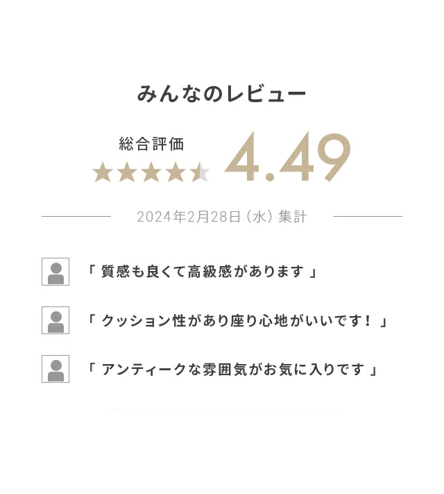 - 組み立ても簡単で、素材もしっかりしてそう!色が写真と違うかったら、、と思ってましたが、写真のまんまイメージ通りの色でした! ストーングレー、フォレストグリーン、サンドベージュの3脚購入しましたが、全て...