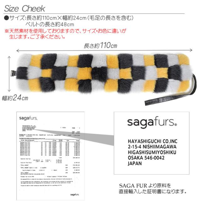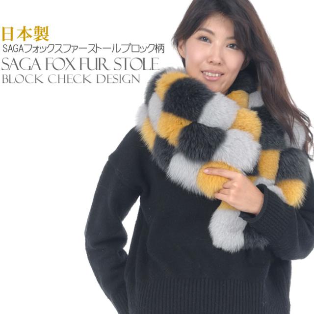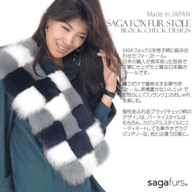 日本製 SAGA フォックス ファー ブロック チェック ストール (FF8101)