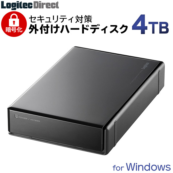 セキュリティ 対策 ハードウェア 暗号化 ハードディスク 4TB 外付け HDD Windows用 パスワードロック ロジテック LHD-EN40U3BS