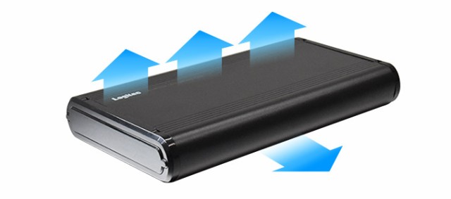 高い熱伝導性による放熱性に優れたアルミボディで内蔵ハードディスクを熱から守ります。また、ファンレス構造で静音性を実現。パソコンやテレビの近くに置いても音が気になりません。