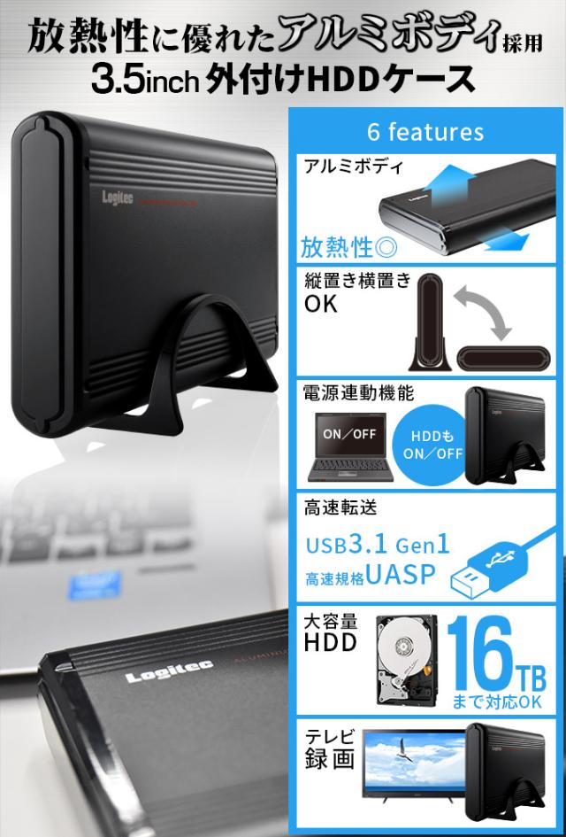 外付けハードディスクケース SATA 3.5インチ HDD USB3.1 Gen1(USB3.0) LHR-EKWU3BK ロジテックダイレクト限定