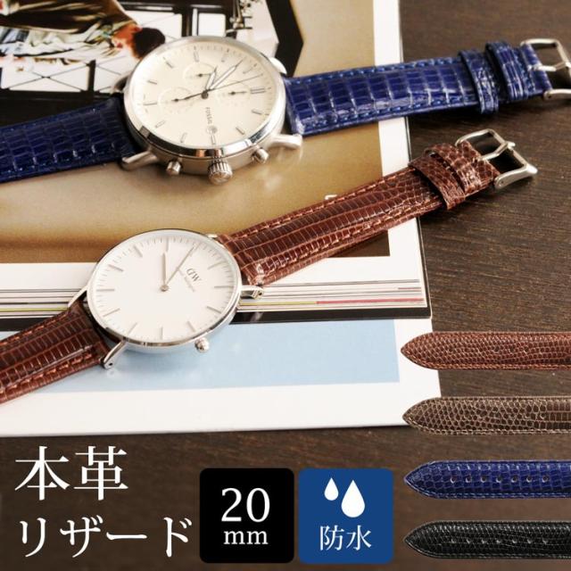 腕時計 ベルト 20mm 本革 防水 リザード レザー レディース (No.06001248) 【ネコポスで送料無料】