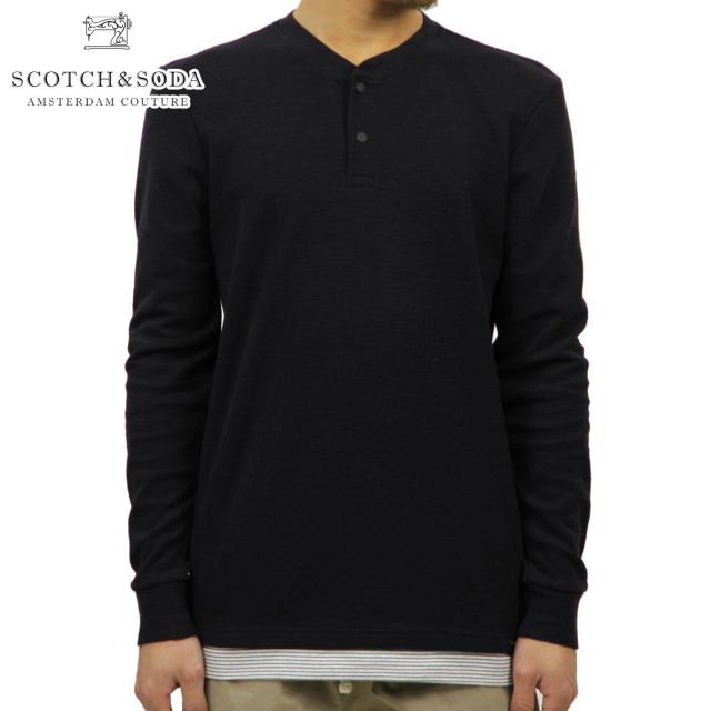 20%OFFクーポンセール 【利用期間 12/3 0:00〜12/6 9:59】 スコッチアンドソーダ SCOTCH&SODA 正規販売店 メンズ 無地 長袖ヘンリーTシャツ FAKE DOUBLE-LAYER GRANDAD LONG SLEEVE HENRY TEE 148980 0002 NIGHT クリスマス プレゼント ラッピング