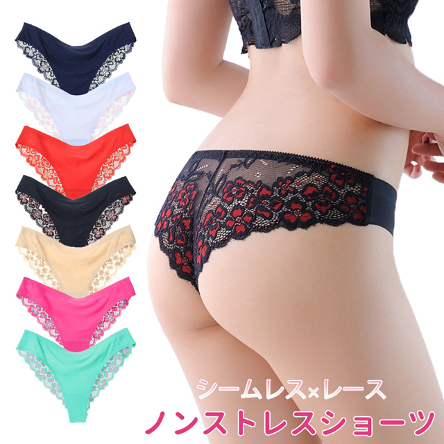 シームレスショーツ ブラジリアンカット レディース レース 花柄 エレガント 透け感 伸縮 ノンストレス下着 rt1526 (pc3)