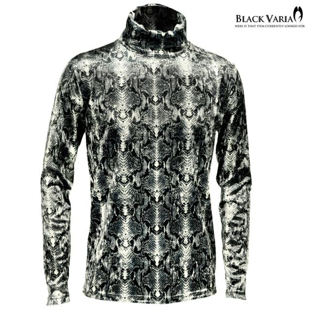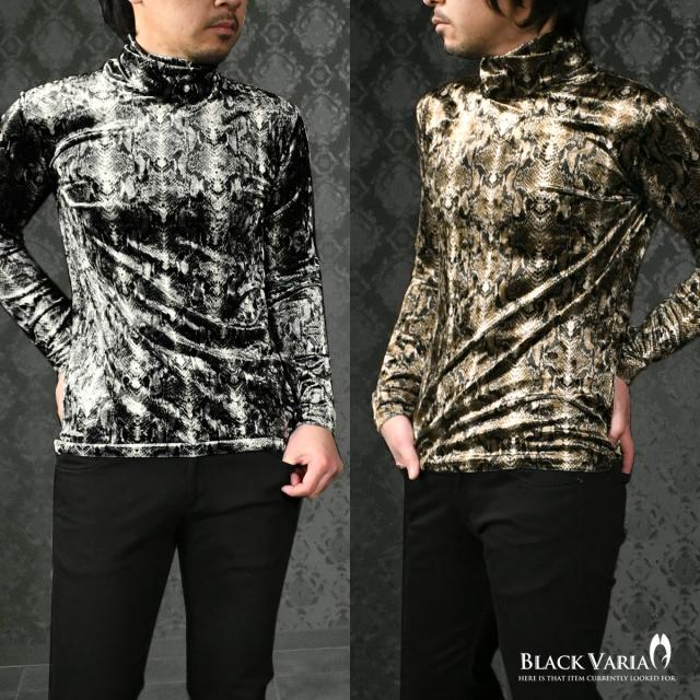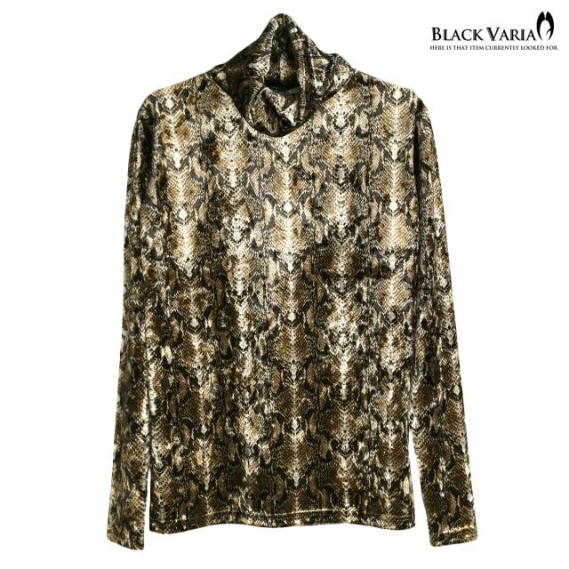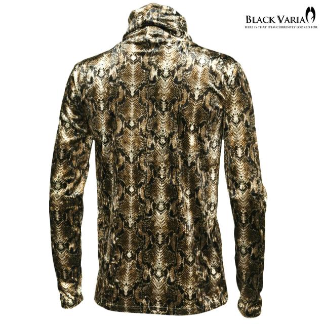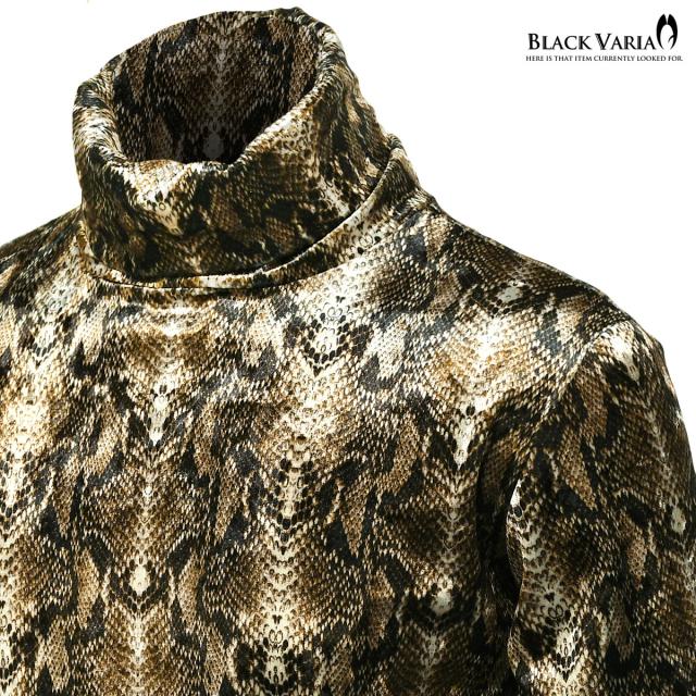 タートルネック パイソン 蛇 ベロア アニマル ボリュームネック 長袖 ストレッチ 日本製 メンズ(ブラウン茶ホワイト白) 183713