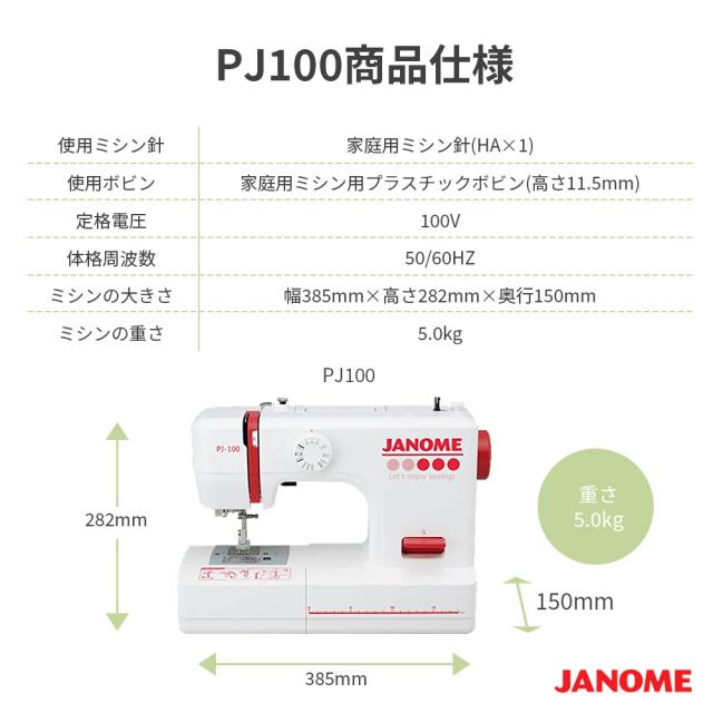 JANOME(ジャノメ) 電動ミシン PJ-100 PJ100 フットコントローラー付き 本体 簡単 初心者