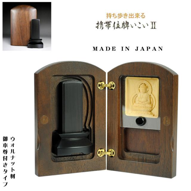 御本尊付き 持ち歩ける国産位牌【携帯位牌いこい2:釈迦如来】高級ウォールナット材+黒檀位牌