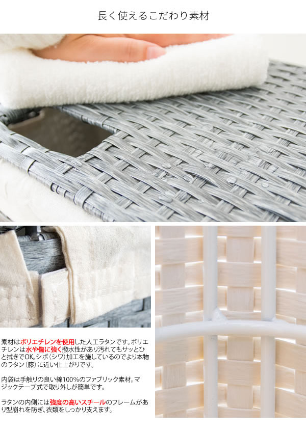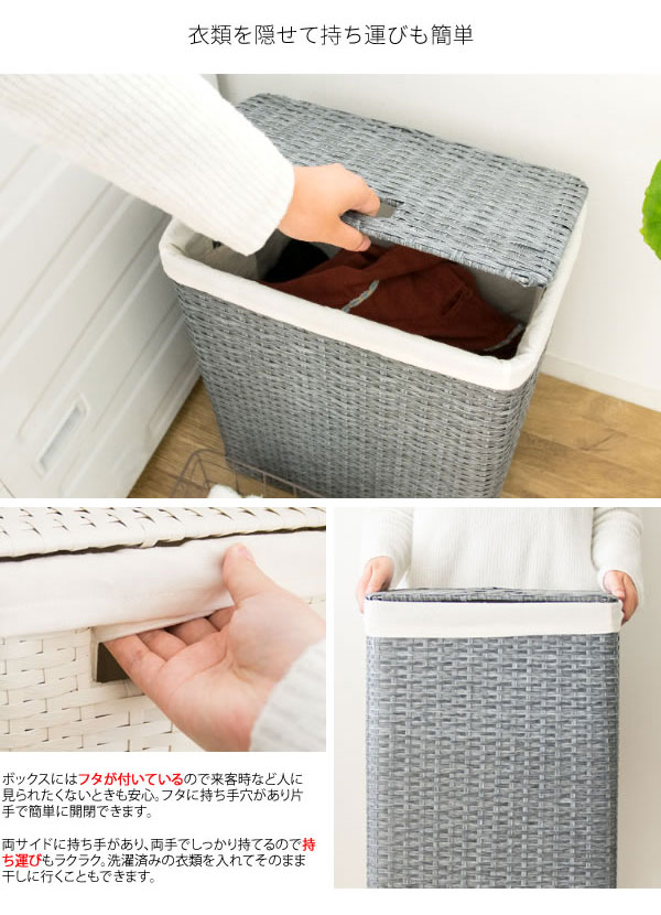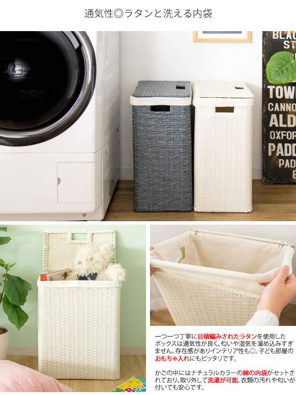 Ario アリオ ランドリーボックス (ランドリラック 洗濯かご チェスト アイボリー ブルー 収納雑貨 ラタン アジアン おしゃれ)