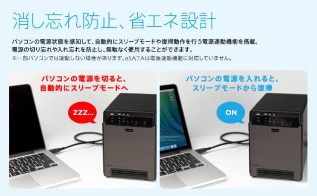 ・eSATAポートが搭載されているPCではeSATA接続も可能です。
