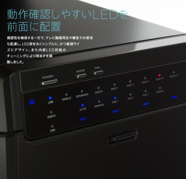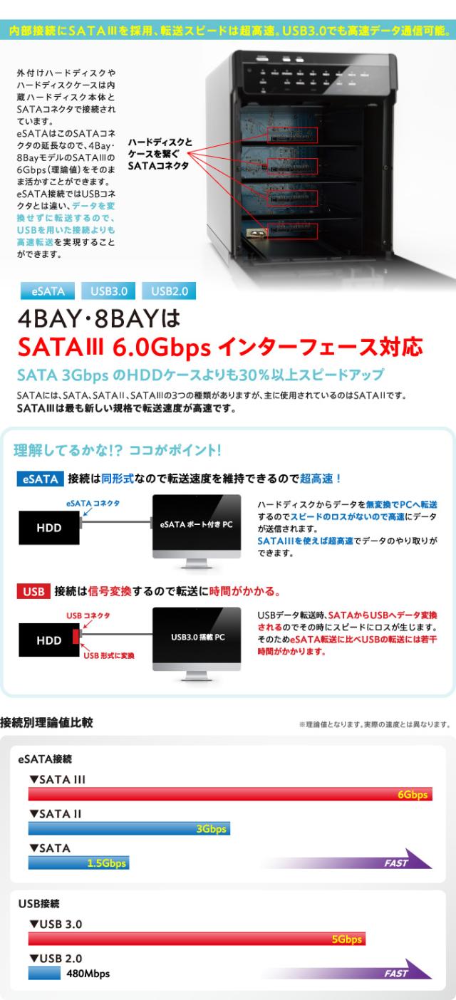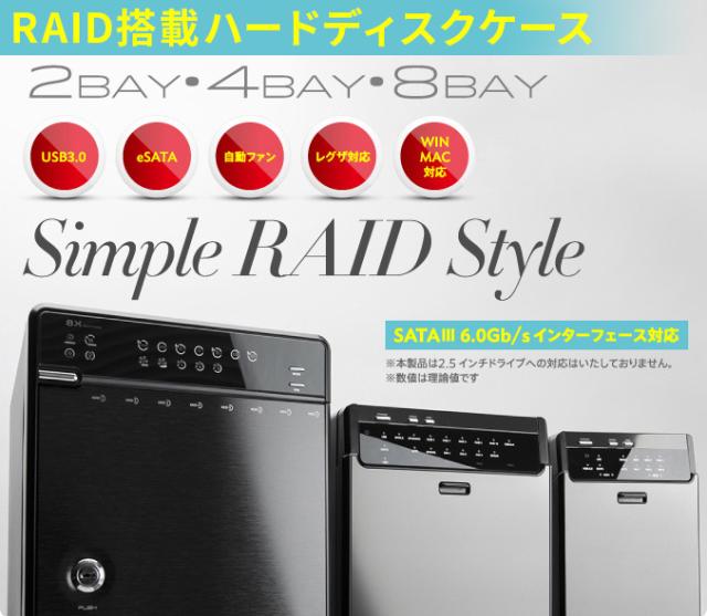 5種類のRAID機能を搭載した8BAY外付型3.5インチハードディスクケースです。3.5インチSATAハードディスクを最大で8台装着することができ、またパソコンとの接続高速インターフェースとして、USB3.0/eSATA を保有していまので、5種類のRAID機能との組み合わせにより使用環境に合わせたRAID構築が可能です。