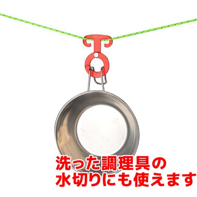 ロープに小物を吊るすのにとても便利なアウトドア用ロープフックです。