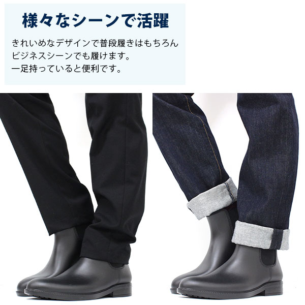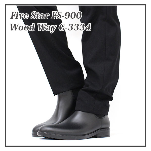 レインブーツ メンズ 長靴 ビジネス ブーツ 防水 完全防水 雨の日 厚底 大きいサイズ 黒 ブラック ショート サイドゴアブーツ サイドゴア レインシューズ 梅雨 おしゃれ 雨 ファイブスター Five Star FS-900 Wood Way G-3334 ギフト