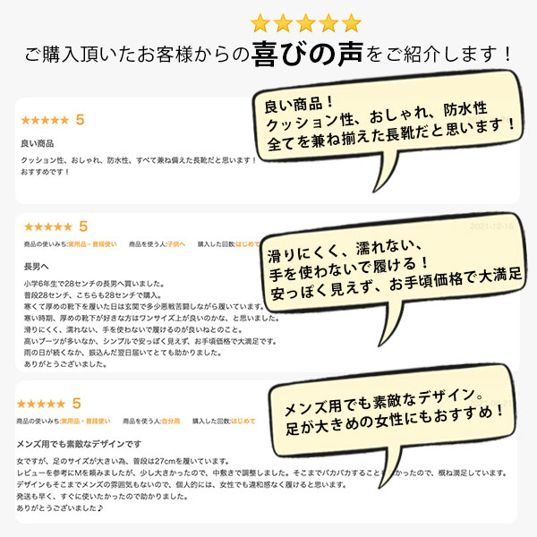 - 早くに届きました。ありがとうございます。試しに履いたときは素足だったのでブカブカでしたが、今日は雪の予報でしたので靴下を二重にしたら、ぴったりというよりややきつめくらいでした。 やや履きにくいのが残念...