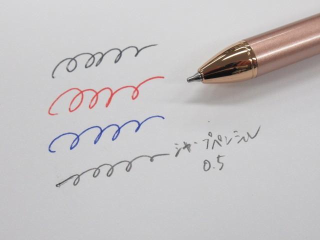 スリムで滑らかな書き味の多機能ペン、ピンクゴールドが優しく輝きます。