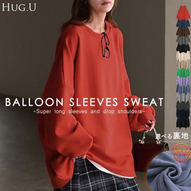 2025AW新作 スウェット 選べる裏地 裏シャギー 一部12月下旬入荷 パイル地 レディース トレーナー トップス 大きいサイズ メンズライク 無地 ドルマンスリーブ ビッグサイズ ビッグ ドロップショルダー ビッグシルエット ストリート ゆったり 長袖 黒 大きめ 秋 冬 HUG.U