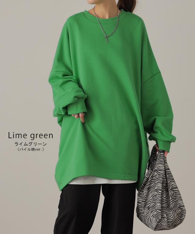 - ライムグリーンを購入。写真通りの鮮やかなグリーンがめちゃくちゃかわいいです!ゆったり楽に着れる形も良くて、ミルクティーも欲しいので早く再販して欲しいです。