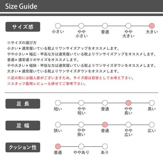 甲高・幅広の方は、普段のサイズ または 0.5cm小さめ をお勧めします。