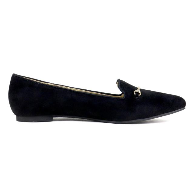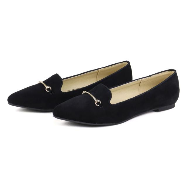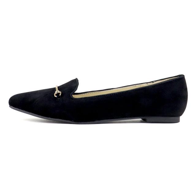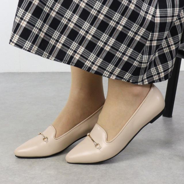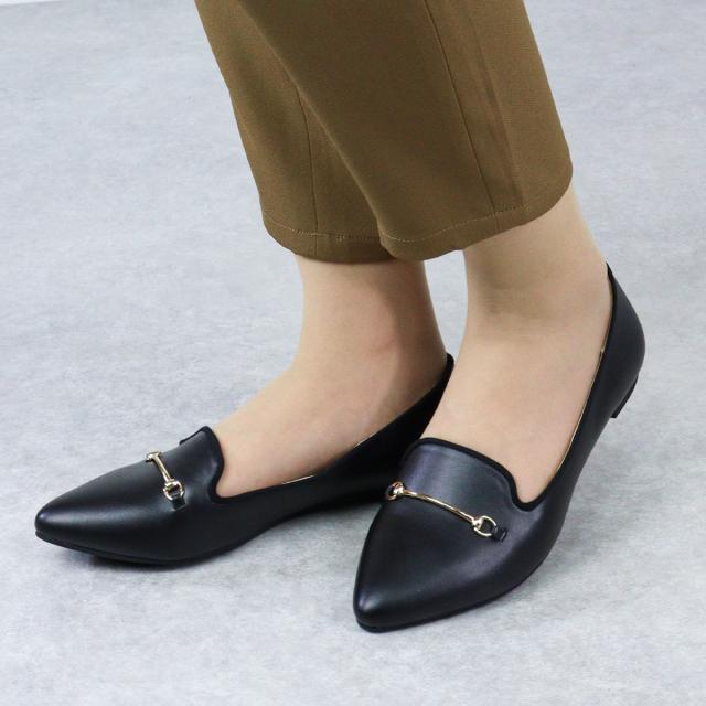 程よくシャープなつま先が、足元にすっきりとした印象を与え、ぺたんこヒールでも野暮ったさを感じさせず、大人っぽく見せてくれます。