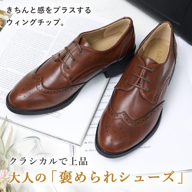 シューズオ ックスフォードシューズ ビジネス カジュアル レディース 靴 ウィングチップ 歩きやすい エナメル No.5497