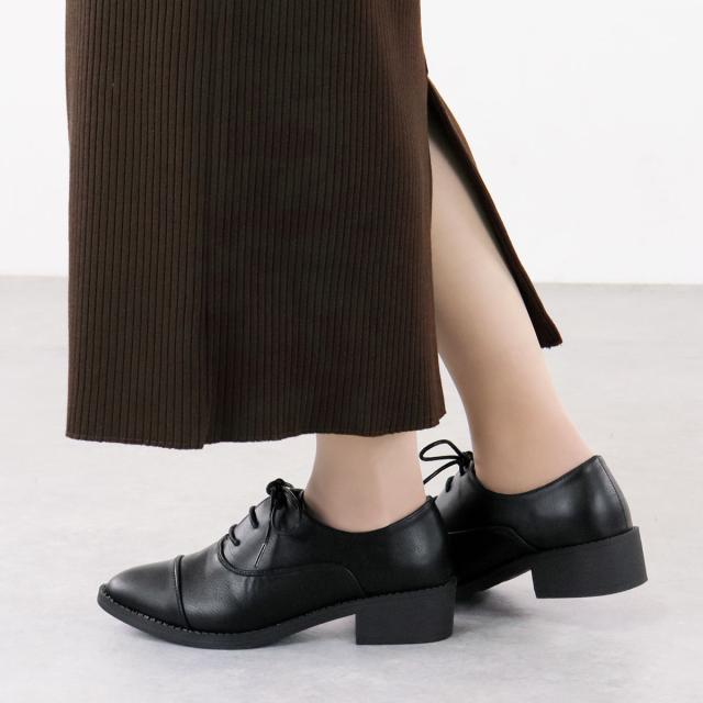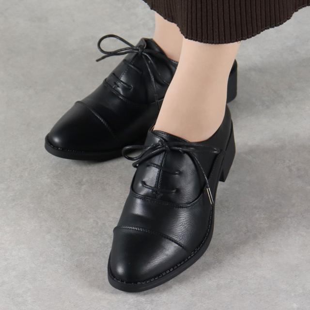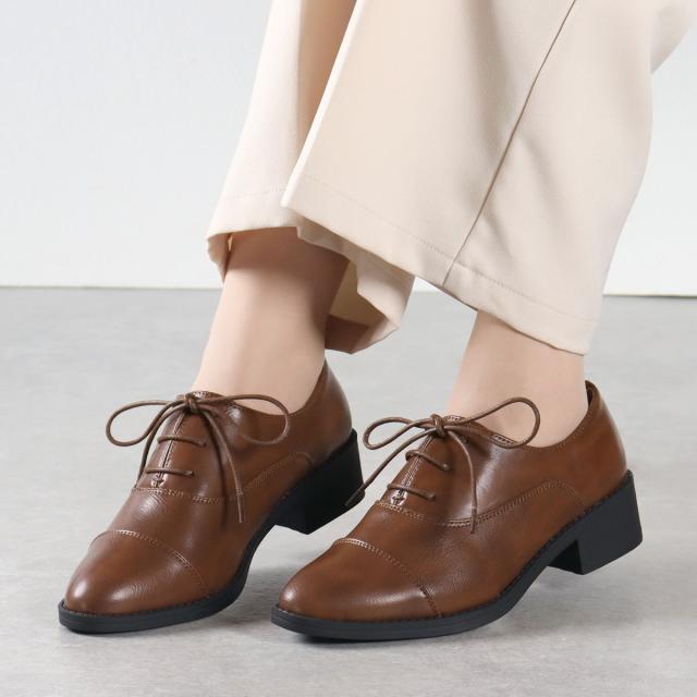 メンズライクな革靴風デザインを、大人っぽいコーデにも合うレディースシューズに仕上げています。