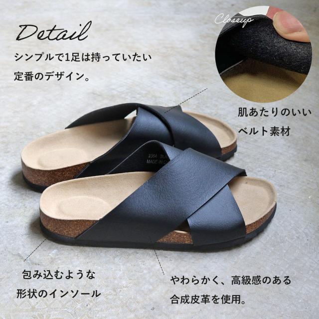 サンダル メンズ 靴 2364 ダブルクロスベルト コンフォートサンダル 社内履き 25-27.5cm