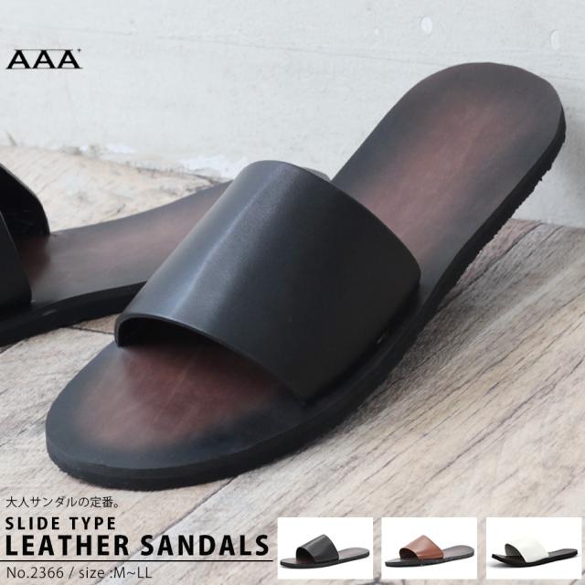 サンダル メンズ 靴 2366 レザーサンダル PUレザー ワンバンド スライドサンダル 24.5-27cm