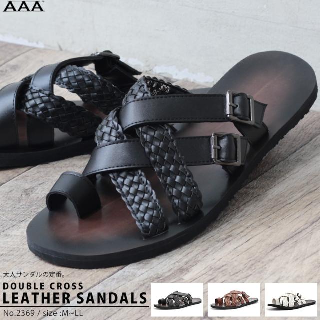 サンダル メンズ 靴 2369 レザーサンダル PUレザー 編み込み ダブルクロス 24.5-27cm