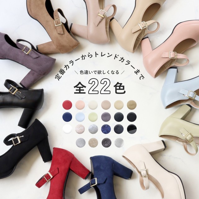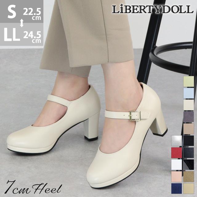 パンプス レディース ストラップ パンプス 痛くない ラウンドトゥ 太めヒール 7cmヒール 黒 ブラック リバティードール No.1110