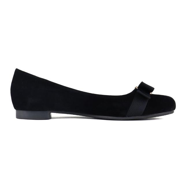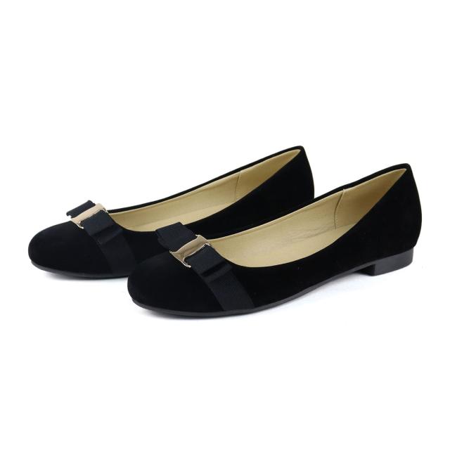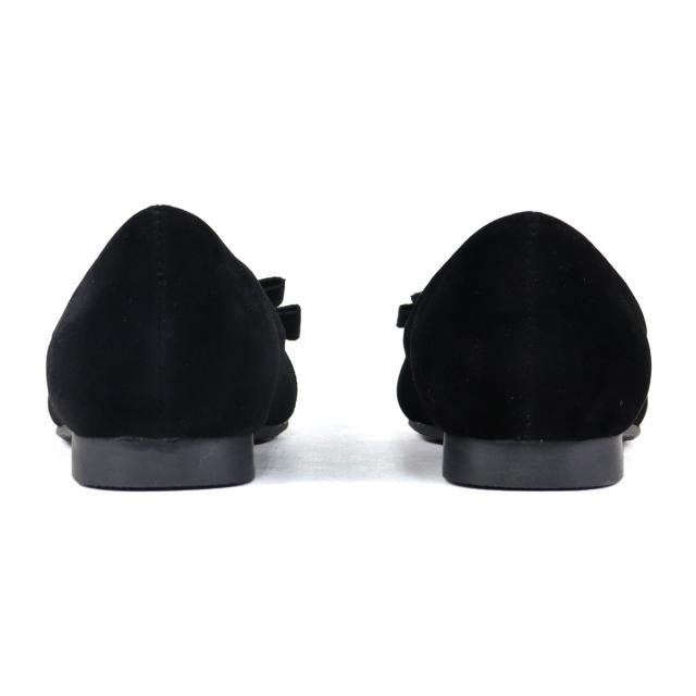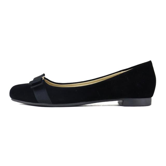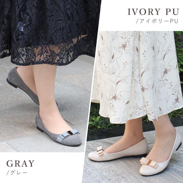 ゴールドのバックルとグログランリボンがアクセントのフラットパンプス。