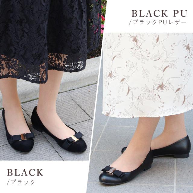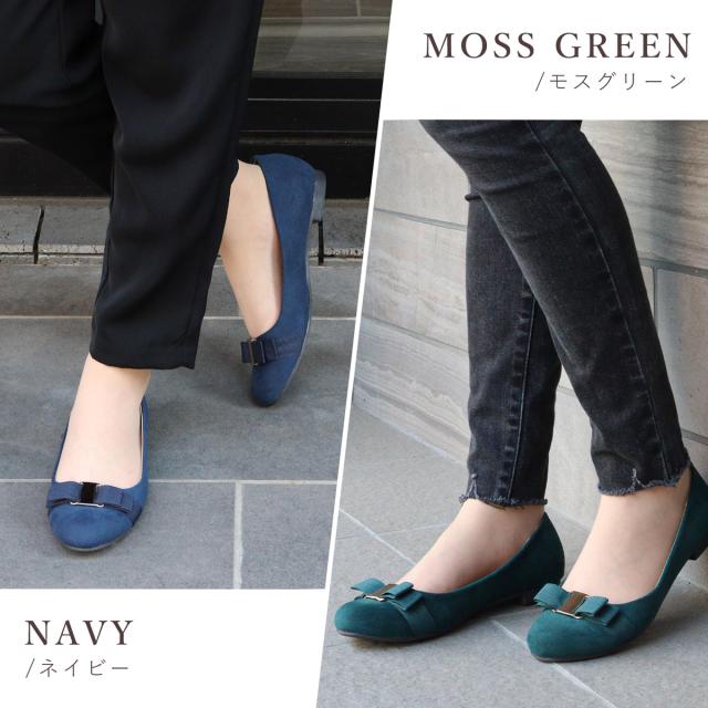 程よくまるいつま先と上品なリボンがきちんと感と大人可愛い足もとを演出◎ローヒールなのでお出かけや通勤、会社の置き靴としてもおすすめなパンプスです。