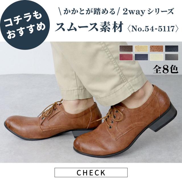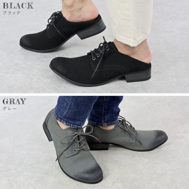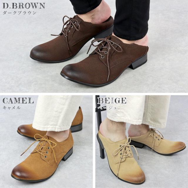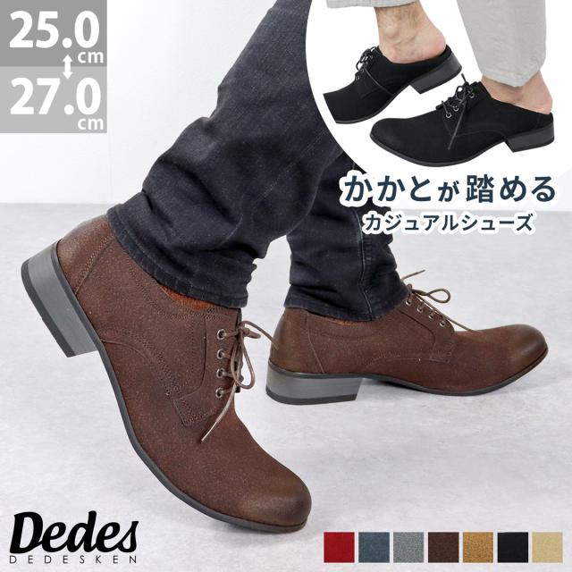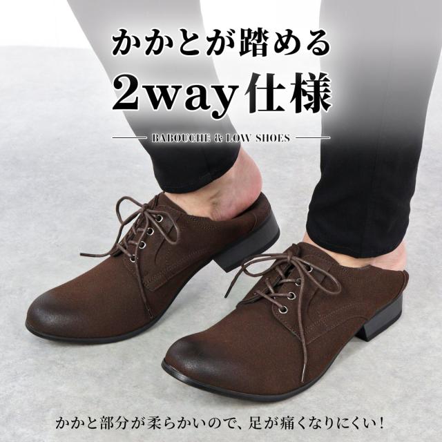 【返品交換不可】シューズ カジュアルシューズ メンズ 紳士靴 靴 レースアップシューズ バブーシュ かかとが踏める 軽量 ロングノーズ ビジカジ 25.0cm-27.0cm 黒 BLACK 茶 BROWN No.5084