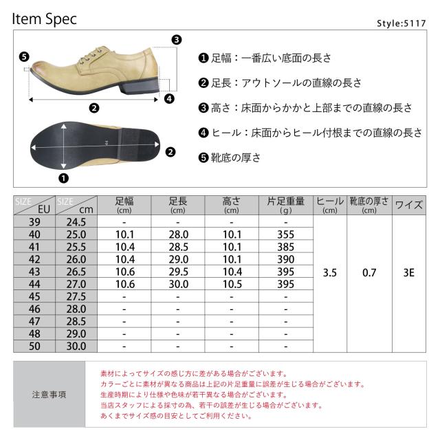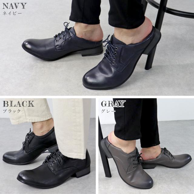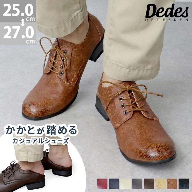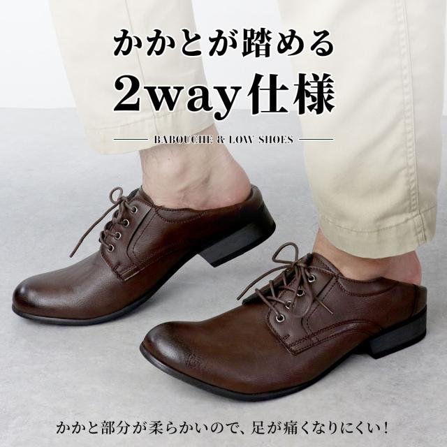 シューズ メンズ バブーシュ カジュアルシューズ 靴 スムースレザー レースアップ 25.0cm-27.0cm No.5117