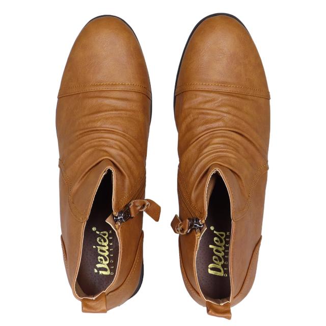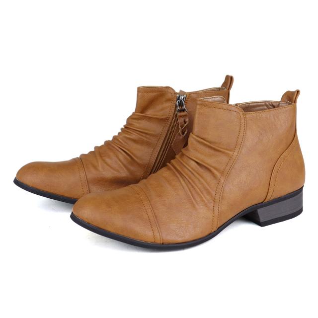 リアルな質感と色ムラのある素材が、本物の革靴のような印象を与えるショートブーツ。