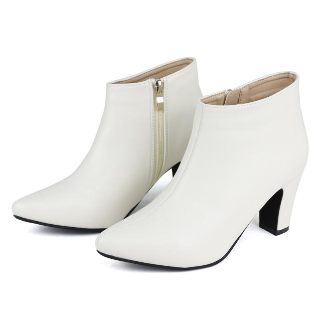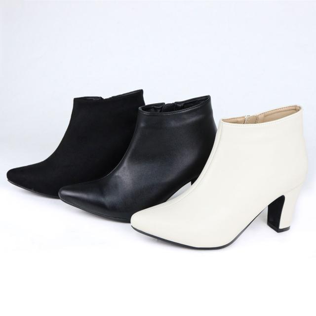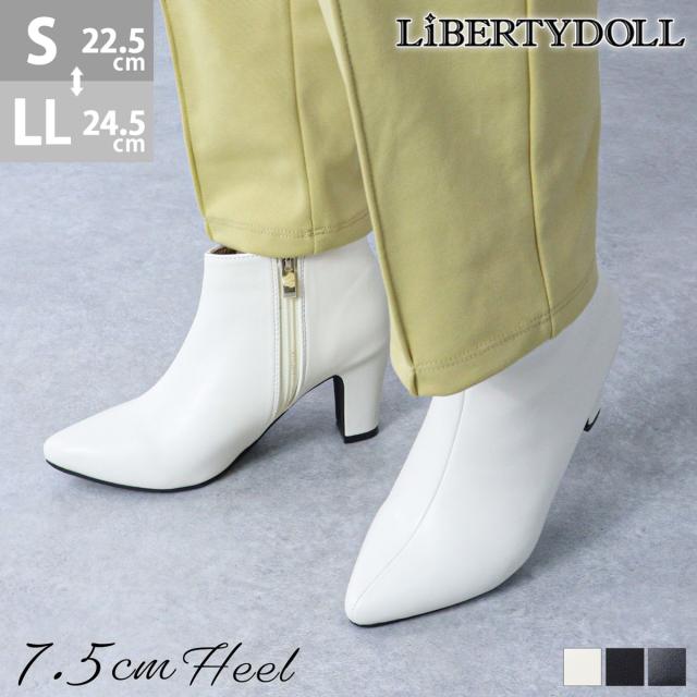 【返品交換不可】ブーツ ブーティー レディース 7.5cmヒール 靴 チャンキーヒール サイドジップ スエード レザー 痛くない 2E 歩きやすい 22.5cm〜24.5cm 黒 ブラック LiBERTYDOLL リバティードール No.9014