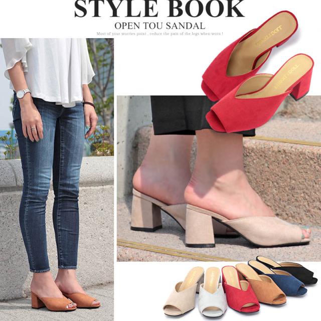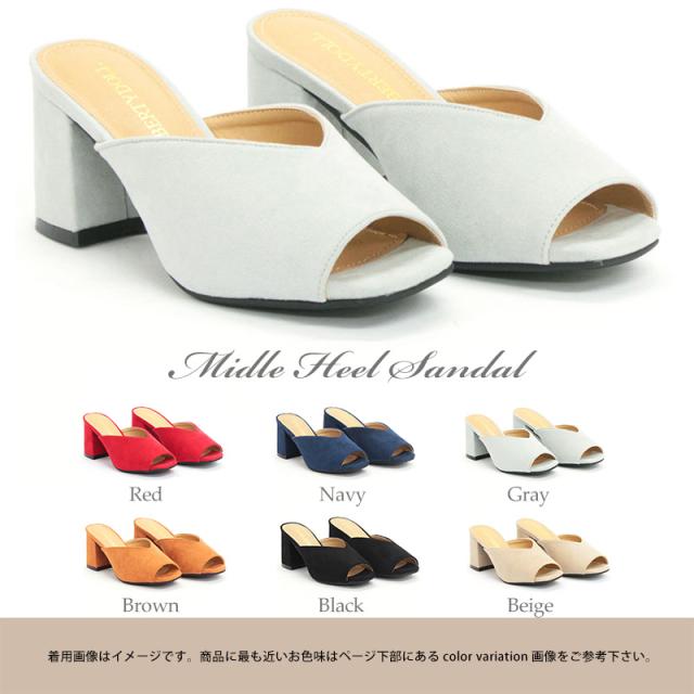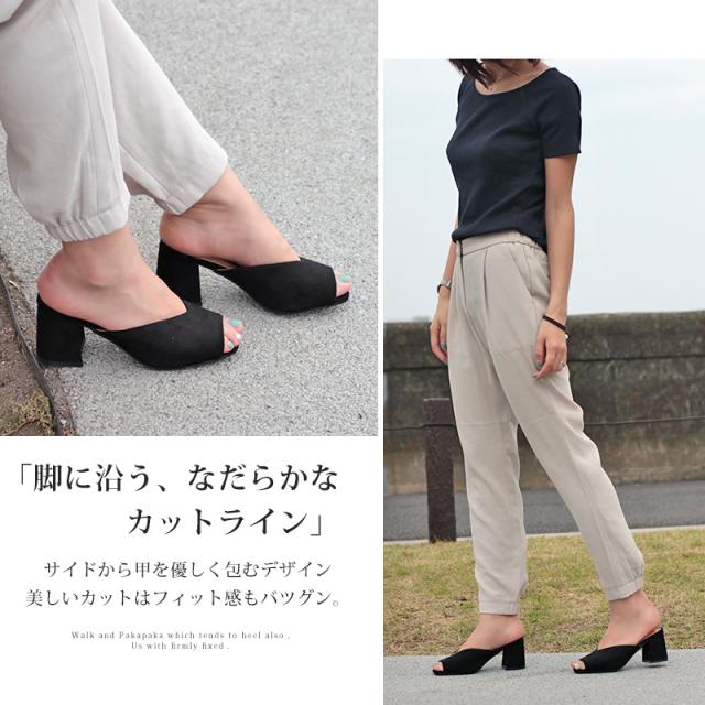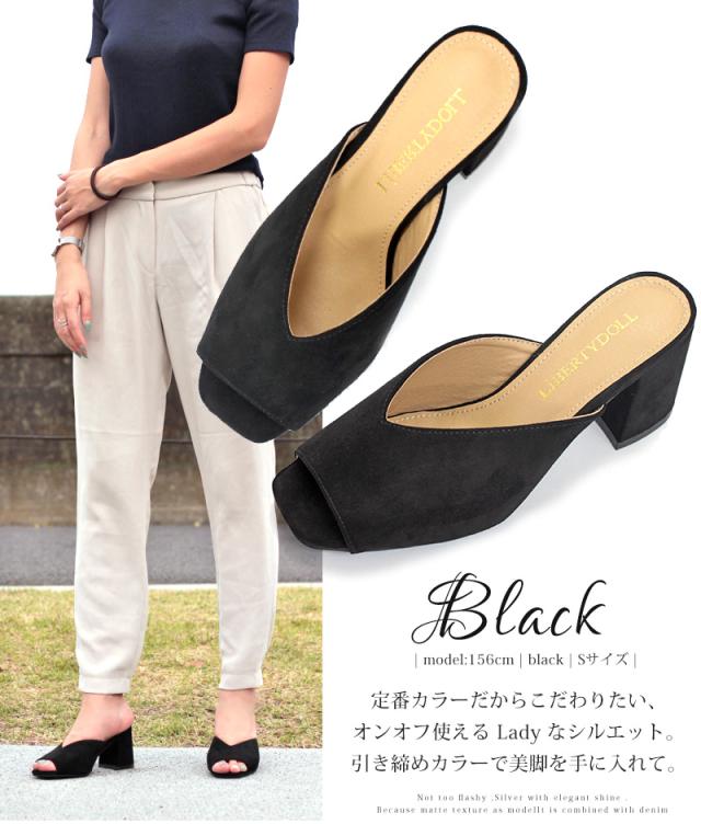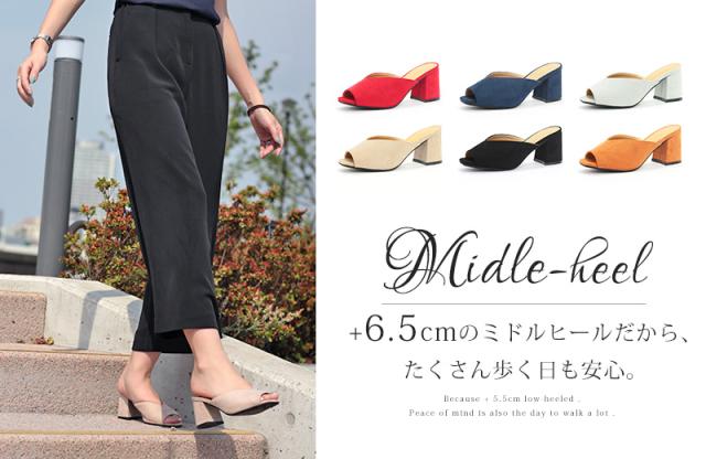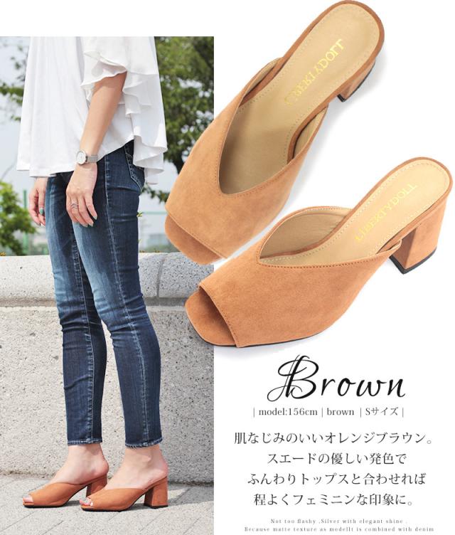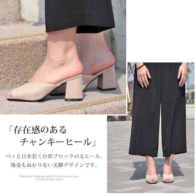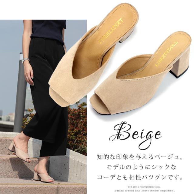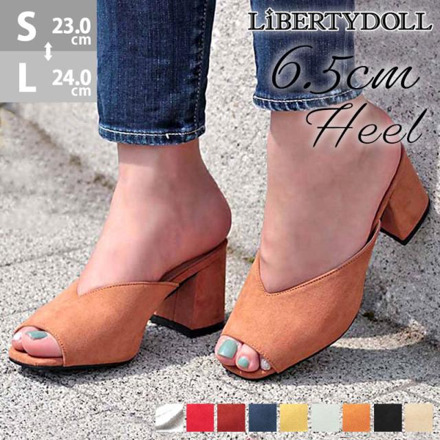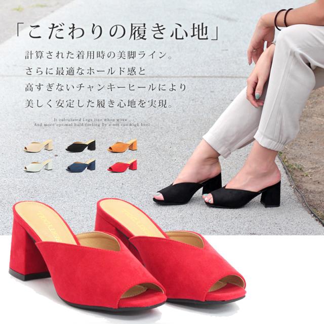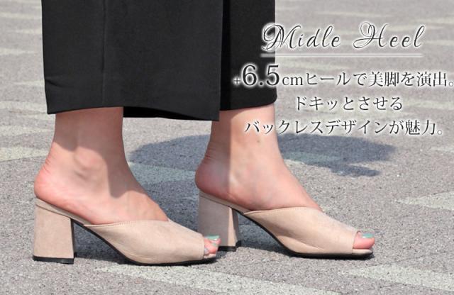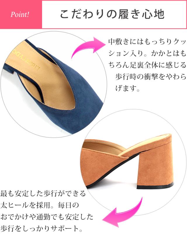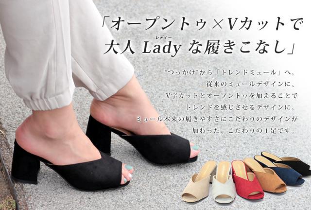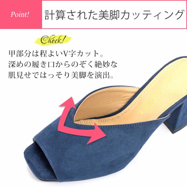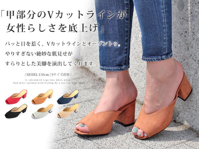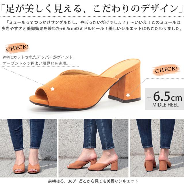 ミュール サンダル レディース 6.5cmヒール ポインテッドトゥ Vカット 美脚 脚長 23cm-24cm No.5426