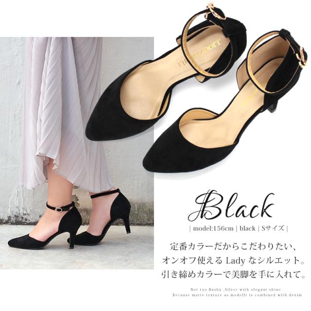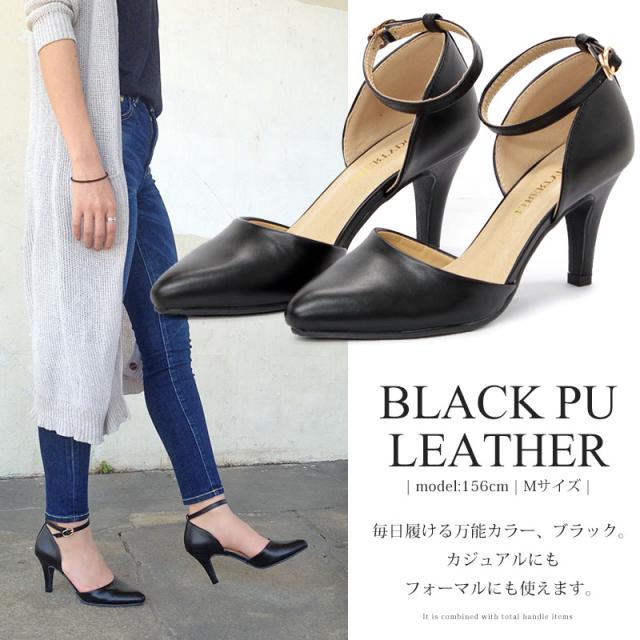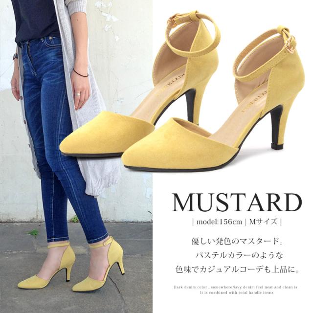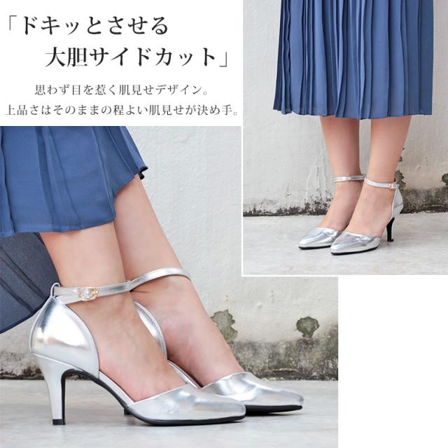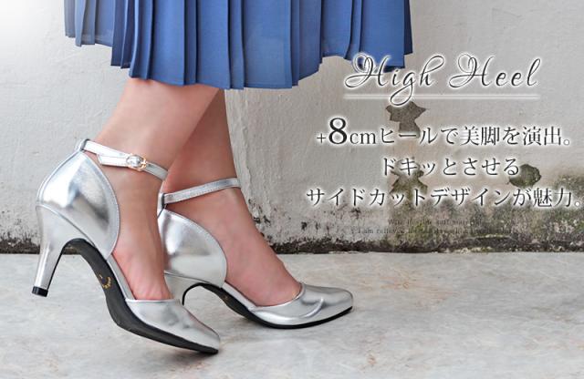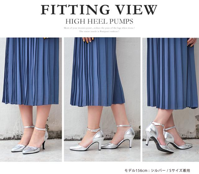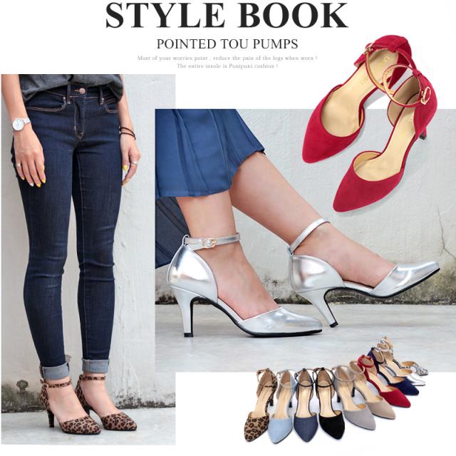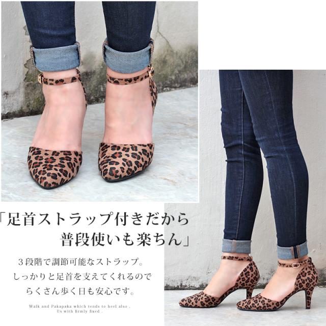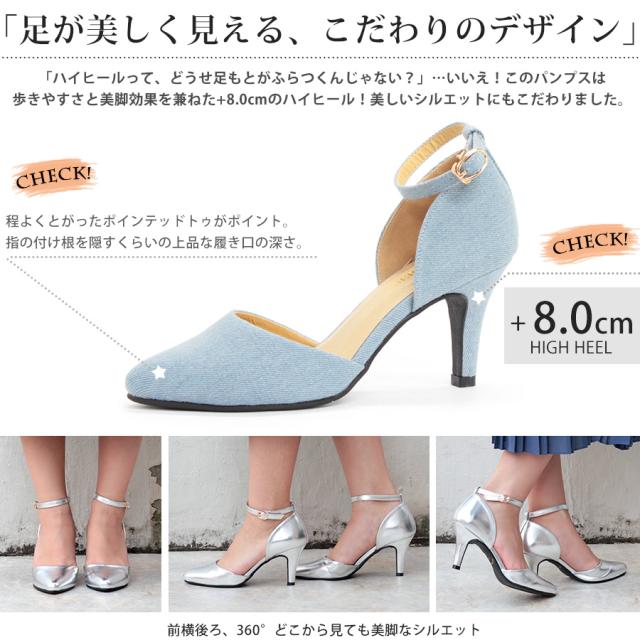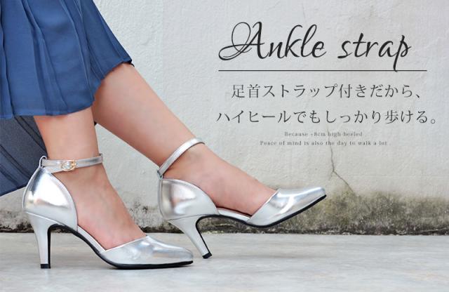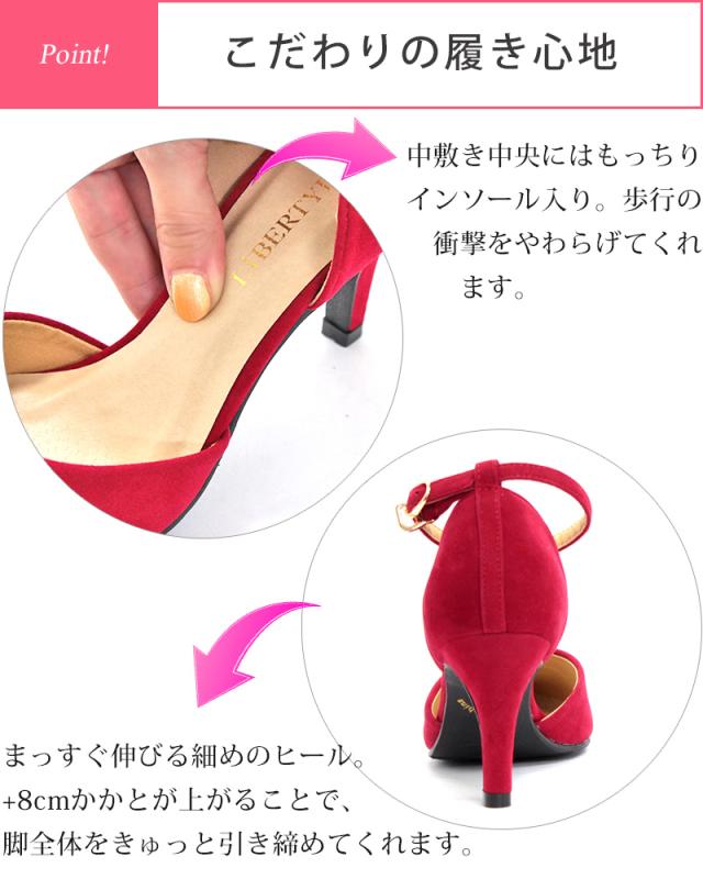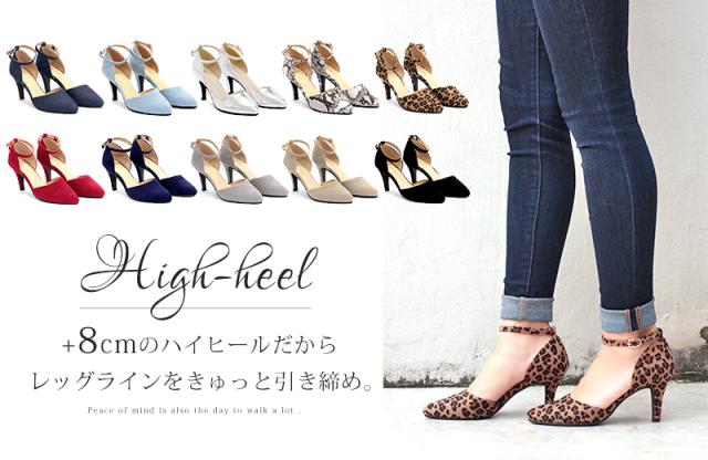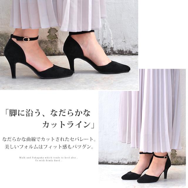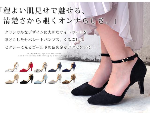 パンプス レディース 8cmヒール ミュール セパレート 走れる アンクルベルト 痛くない 22.5-25cm No.5430