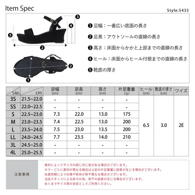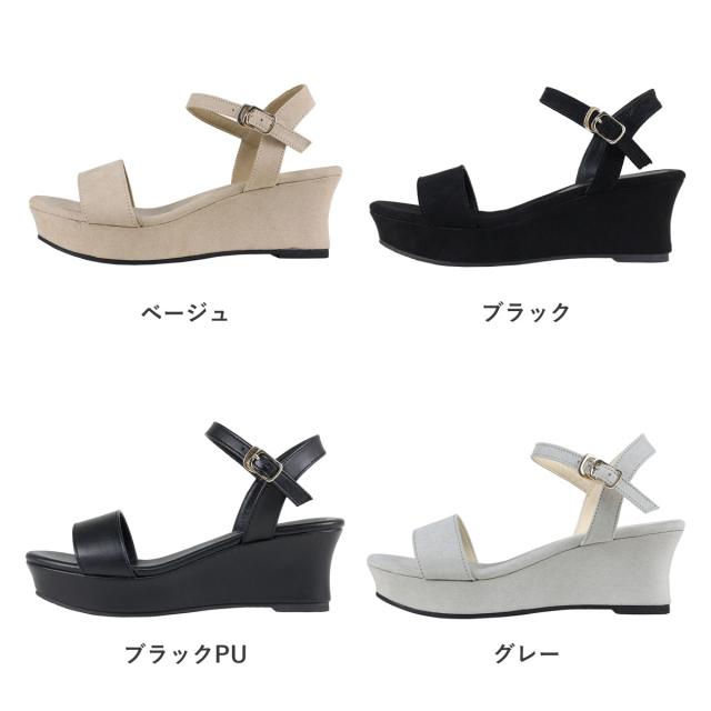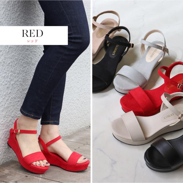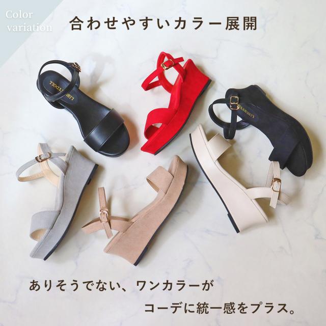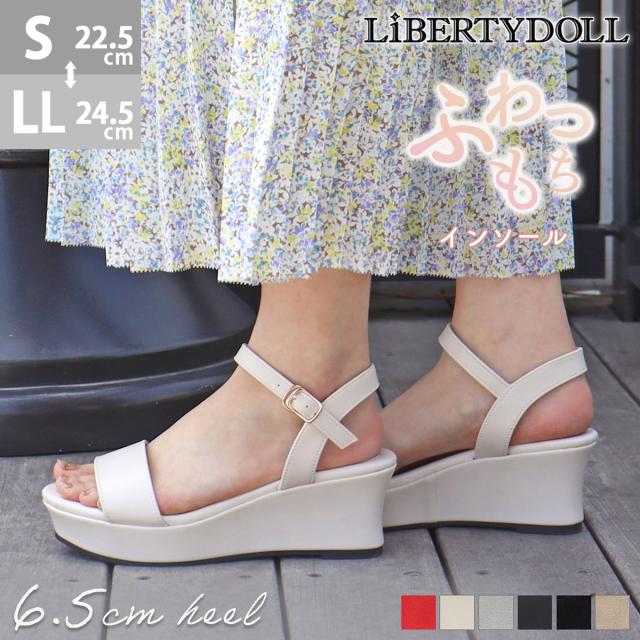 サンダル レディース 厚底 ウェッジソール 6.5cmヒール ストラップ クッション No.5435 黒 ブラック LiBERTYDOLL リバティードール